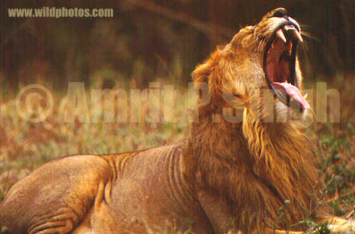 A yawning Asiatic lion