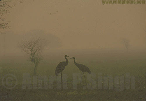 A sarus crane pair on a winter morning, Keoladeo National Park, Bharatpur